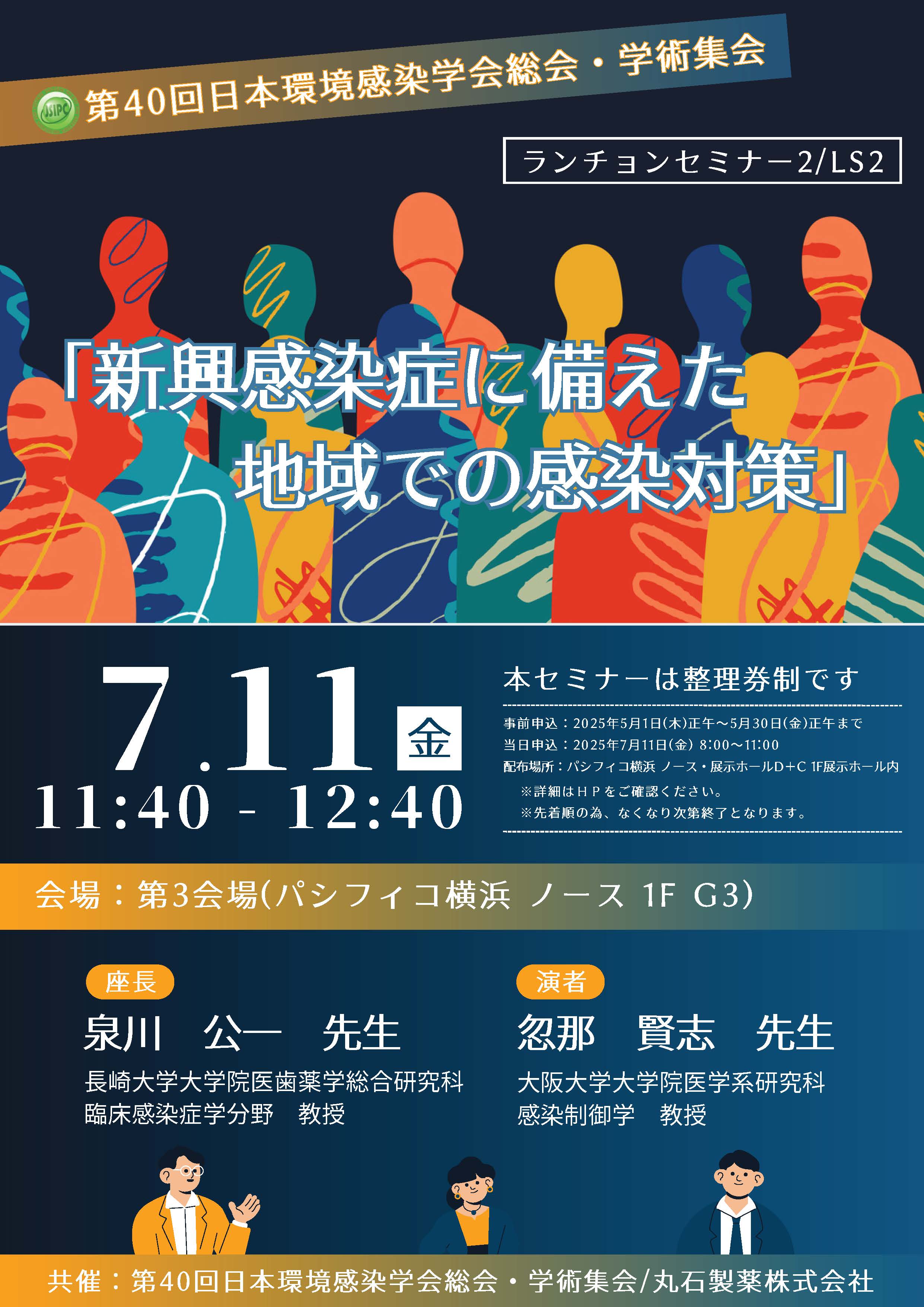 ランチョンセミナー2 新興感染症に備えた地域での感染対策 2025年7月11日(金) 11:40 - 12:40 第3会場 | ノース 1F G3 共催:丸石製薬株式会社 |