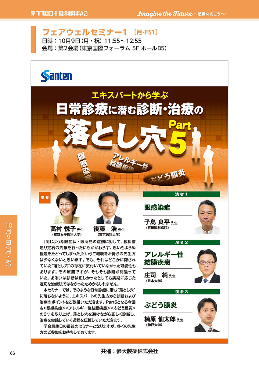フェアウェルセミナー1 エキスパートから学ぶ 日常診療に潜む診断・治療の落とし穴 Part5 2023年10月9日(月) 11:55 - 12:55 第2会場 | 東京国際フォーラム 5F ホールB5 共催:参天製薬株式会社 |