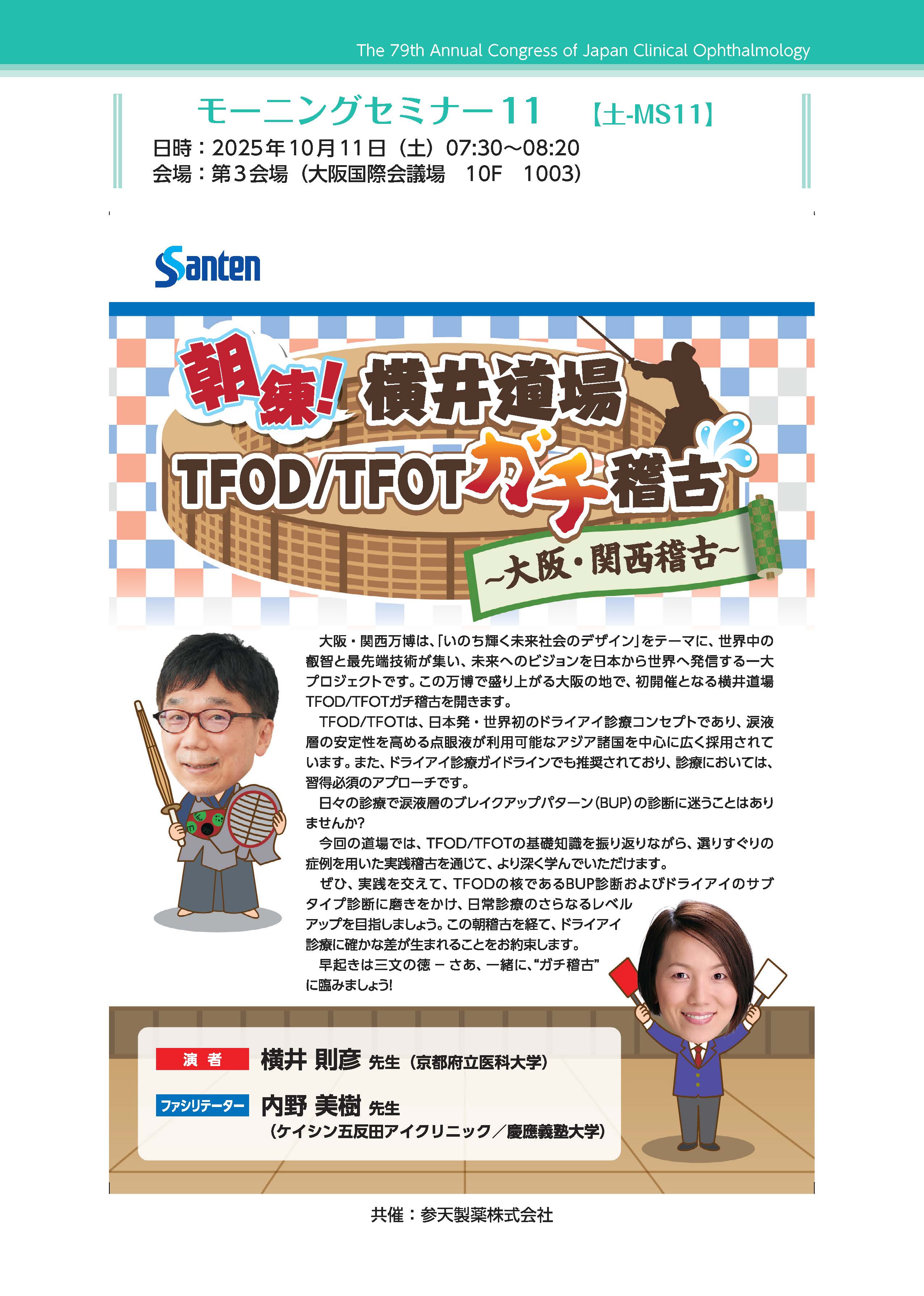 モーニングセミナー 11 朝練!横井道場 TFOD/TFOTガチ稽古 ~大阪・関西稽古~ 2025年10月11日(土) 7:30 - 8:20 第3会場 | 大阪国際会議場 10F 1003 共催:参天製薬株式会社 |