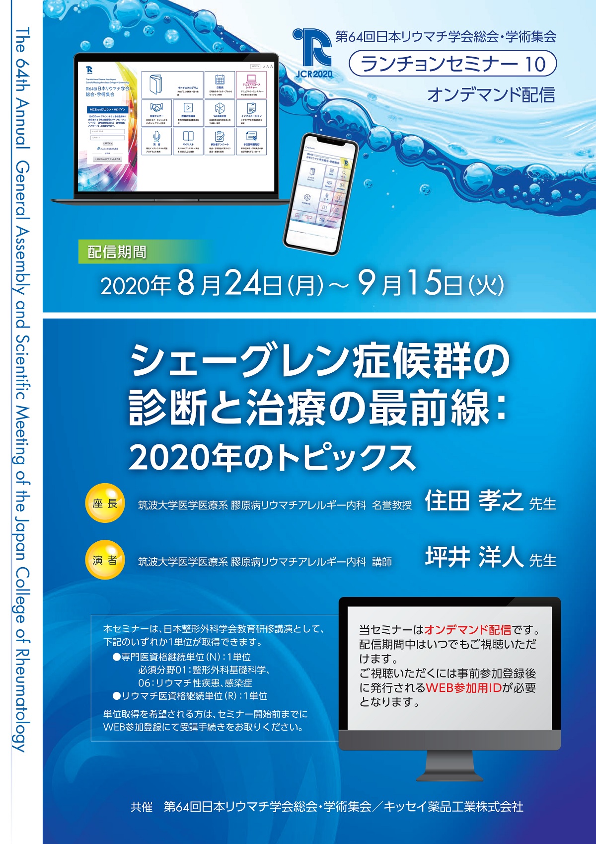 【オンデマンド 8/24~ 配信】 ランチョンセミナー10 シェーグレン症候群の診断と治療の最前線:2020年のトピックス 配信期間:8月24日(月)~9月15日(火) 共催:キッセイ薬品工業株式会社 |