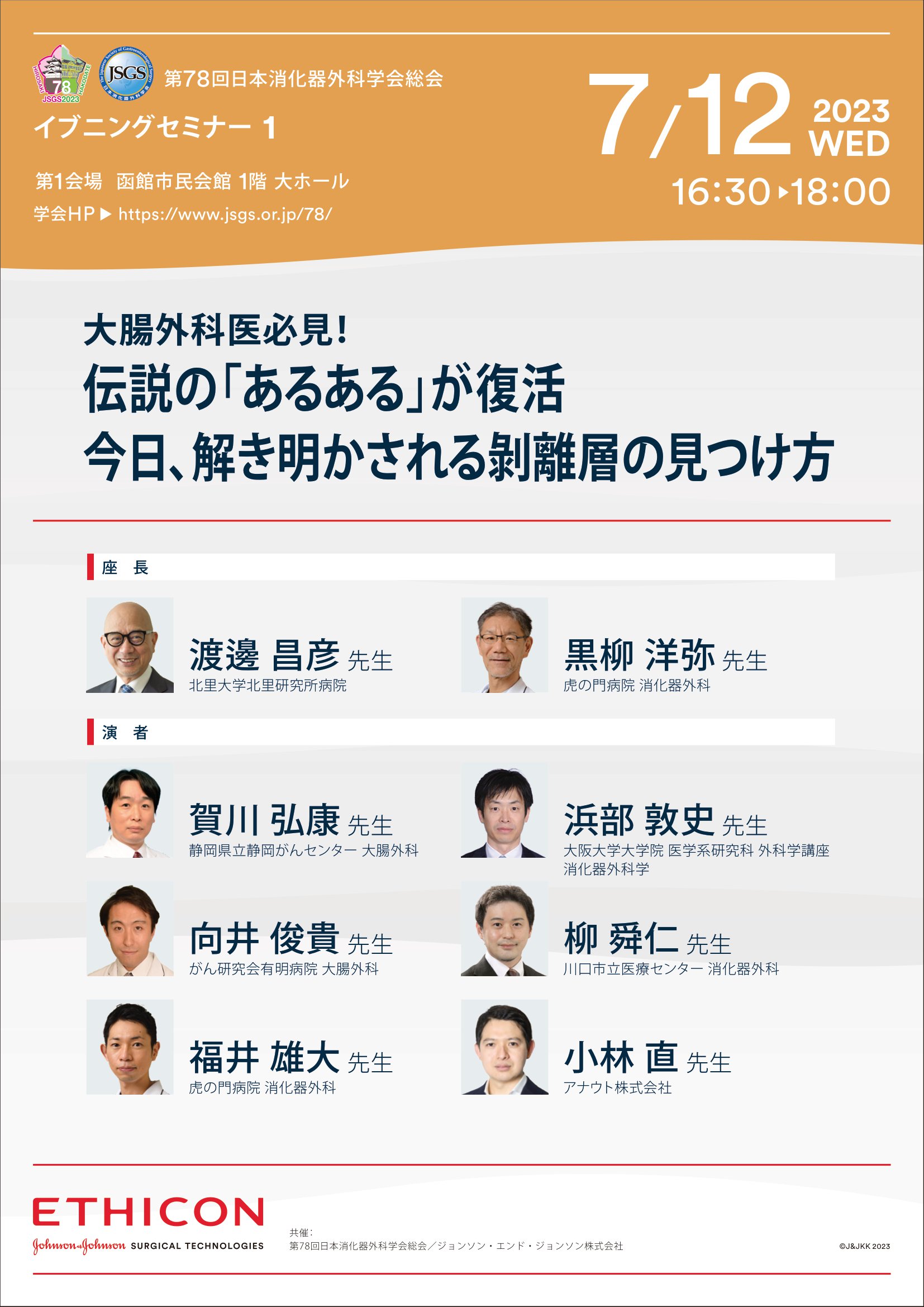 イブニングセミナー1 大腸外科医必見! 伝説の「あるある」が復活 今日、解き明かされる剝離層の見つけ方 2023年7月12日(水) 16:30 - 18:00 第1会場 | 函館市民会館 1階 大ホール 共催:ジョンソン・エンド・ジョンソン株式会社 |