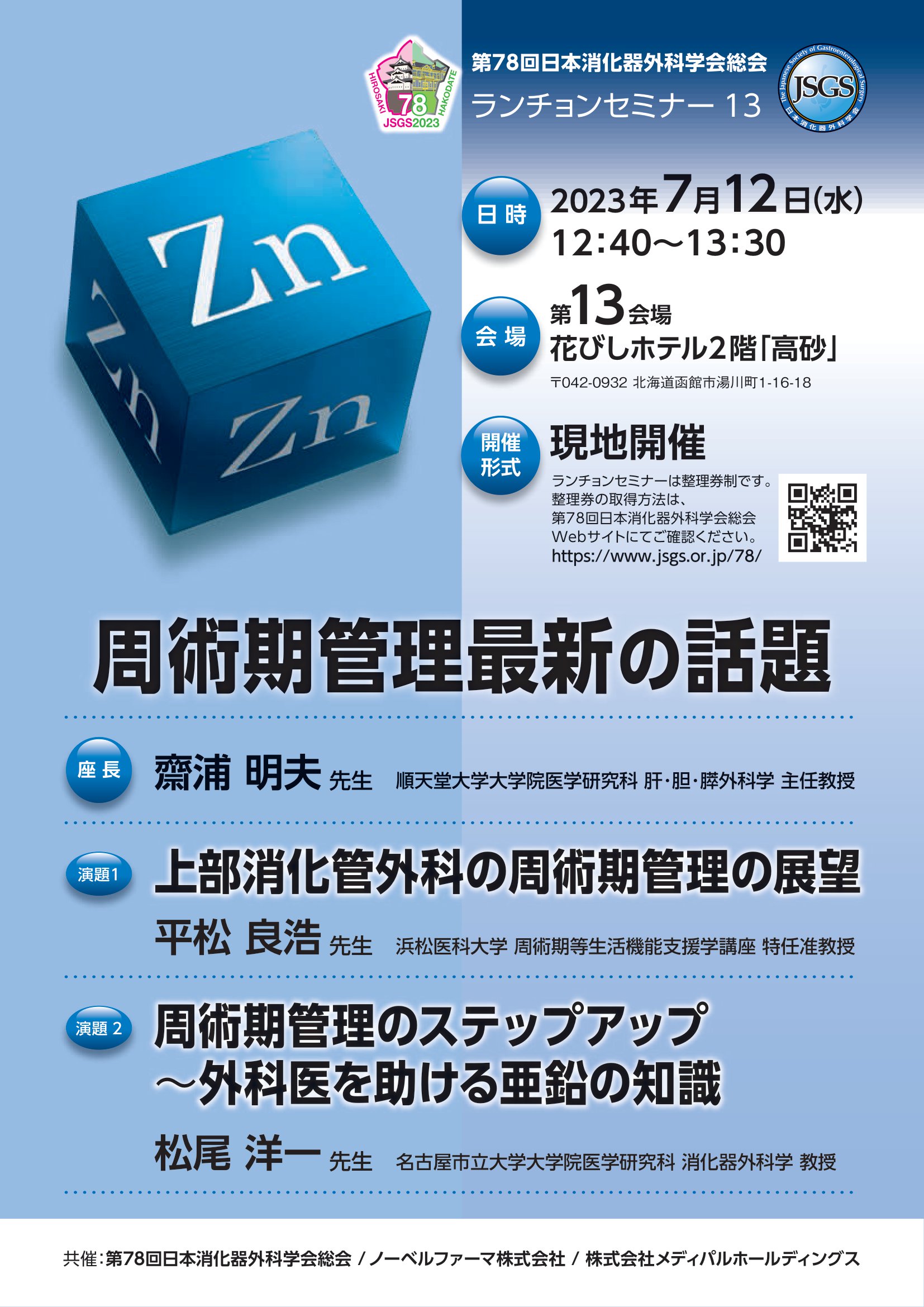 ランチョンセミナー13 周術期管理最新の話題 2023年7月12日(水) 12:40 - 13:30 第13会場 | 花びしホテル 2階 高砂 共催:ノーベルファーマ株式会社/株式会社メディパルホールディングス |