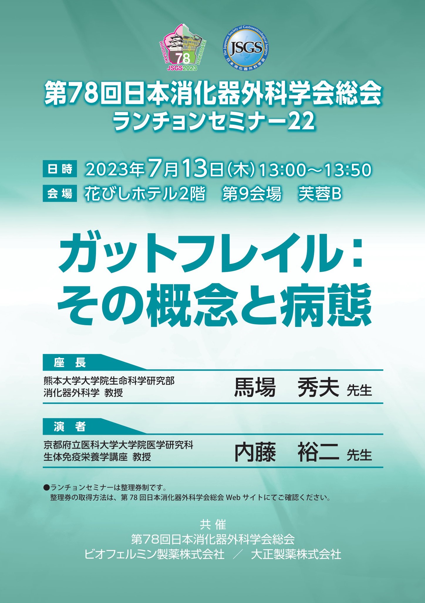 ランチョンセミナー22 2023年7月13日(木) 13:00 - 13:50 第9会場 | 花びしホテル 2階 芙蓉B 共催:ビオフェルミン製薬株式会社/大正製薬株式会社 |